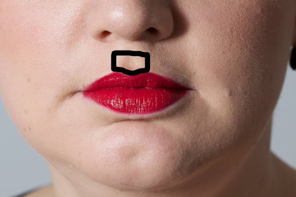 Heldigvis findes der bedre måder at skabe illusionen af større læber på. Et godt trick er en lille smule highlighter i amorbuen. Du kan lægge den på med en øjenskyggepensel eller med fingeren, det betyder ikke det store, men det får dine læber til at blive fremhævet på smukkeste vis. Især hvis du bruger læbestift. Du skal lægge det cirka indenfor det område, jeg har tegnet på billedet (jeg er en klovn til at tegne på en computer, men det skulle gerne give mening).