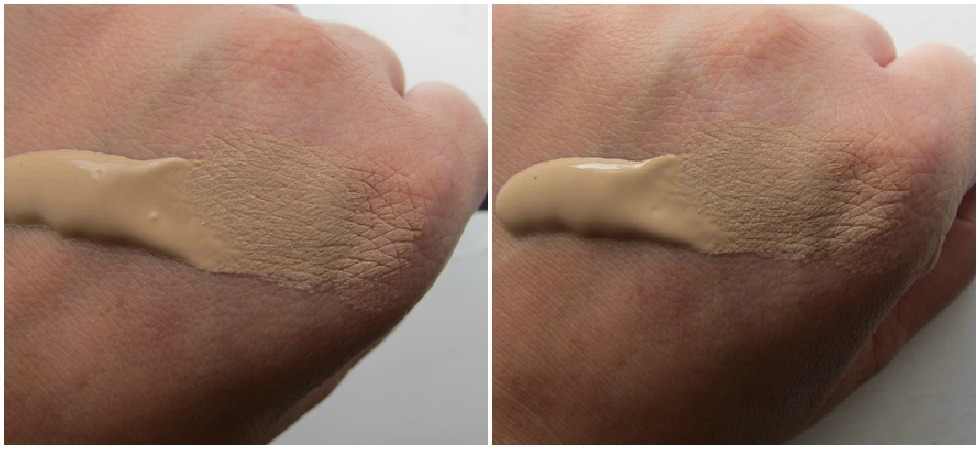 Den virker ikke engang til at oxidere – altså bliver mørkere på huden med tiden, hvilket ellers ofte er standard med ekstra holdbare foundations. Disse billeder er KUN taget med henblik på at vise oxidering over tid – det er selvfølgelig slet ikke sådan foundationen lægger sig på huden, jeg har smurt et håbløst tykt lag på for at tjekke.